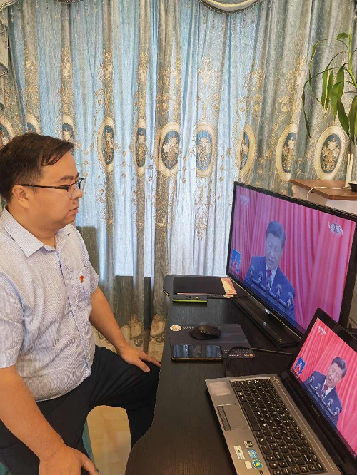 中诺通讯党支部柏萍在家收看党的二十大开幕式