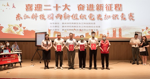 近日,以“喜迎二十大、奋进新征程”为主题,由惠州仲恺高新区东江科技园综合党委主办的东江科技园“两新”组织(新经济组织、新社会组织)党史知识竞赛拉开帷幕,园区党委及尊龙凯时电子成员企业迈锐光电在内的14支两新组织党支部参加竞赛。经过紧张激烈的角逐,迈锐光电党支部代表队喜获第三名的优异成绩。