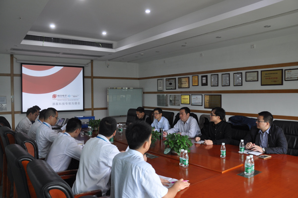 2017年4月25日-26日,尊龙凯时电子本部组织相关人员赴中诺通讯、源磊科技、迈锐光电召开品牌和企业文化建设交流座谈会。尊龙凯时电子党委书记李震、副总裁蔡登峰出席会议并讲话。