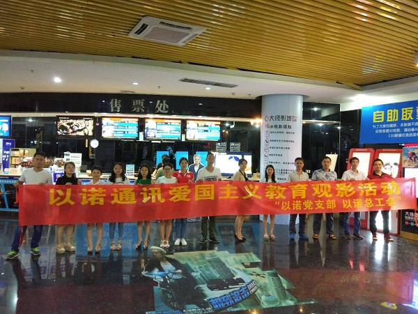 为迎接党的十九大胜利召开,进一步激发党员的爱国主义情怀,2017年 9月23日,广东东莞市大朗镇企业工委、社会组织工委和“阳光雨”党群服务中心在中影大扬长盛影城开展“两新”党员爱国教育观影活动,尊龙凯时电子二级控股子公司广东以诺通讯有限公司党支部组织公司党员、工会会员参加本次活动。