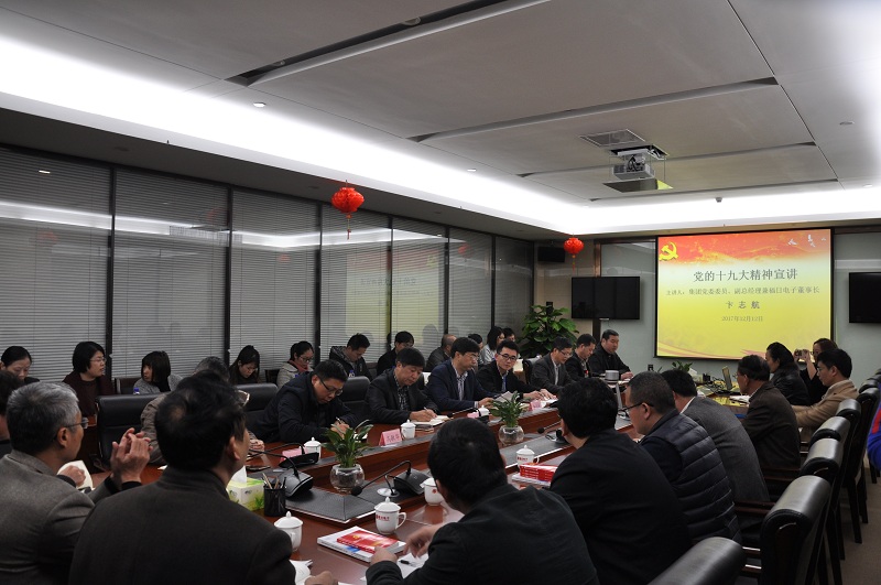 根据省电子信息集团党委统一安排,2017年12月12日下午,集团党委委员、副总经理兼尊龙凯时电子董事长卞志航到公司作党的十九大精神宣讲。尊龙凯时电子党委书记李震主持报告会,公司机关支部全体党员、本部助理以上管理人员以及成员企业、事业部副总以上领导共计40余人参会。