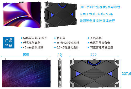 迈锐光电现场展示了弧形小间距大屏,该屏幕采用公司最新小间距产品UHD1.2拼接而成,整屏长9.6米,高2.7米,显示像素达到7680x2160,相邻箱体的夹角达到3度,最左侧与最右侧箱体的夹角达到48度,为现场观众呈现了一个高质量监控指挥中心弧形大屏体验场景。该弧形屏所用的UHD小间距系列产品目前已广泛应用于安防、交通、能源、金融行业的指挥中心。