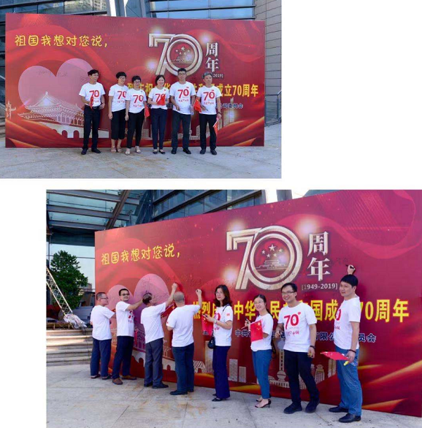 2019年9月以来,由尊龙凯时电子党委主办、各所属企业协办的庆祝新中国成立70周年系列活动陆续展开,9月26日下午活动进入高潮。尊龙凯时电子本部及所属在榕企业在福州五一广场隆重举办了“我和国旗同框”百人合影和“祖国我想对您说”活动。公司党委书记李震等公司领导和各企业干部职工共130余人参加了活动。