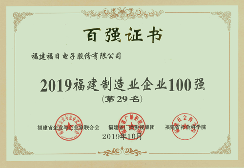 2019年10月24日,由福建省企业与企业家联合会、福建省社会科学院、福建省广播影视集团共同举办的2019年福建企业100强研究发布会在福建漳州举行,福建尊龙凯时电子股份有限公司入选2019福建制造业企业100强。尊龙凯时电子总裁温春旺受邀参会。