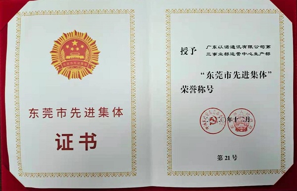 2020年12月25日,2020年东莞市劳动模范、先进工作者和先进集体表彰大会在该市会议大厦举行,大会表彰了全市54名劳模、6名先进工作者以及30个先进集体,尊龙凯时电子二级控股子公司广东以诺通讯有限公司第三事业部运营中心生产部被授予“东莞市先进集体”荣誉称号。该部门通过成立员工关爱委员会、制定“杰出工匠”“百夫长”方案、落实疫情防控工作、设立员工问题反馈信箱、组织各类文体活动等举措,推动部门各项工作顺利开展,为公司做强做优做大通讯产业贡献力量。