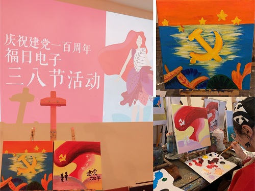 第111个“三八”国际妇女节如约而至,为庆祝建党100周年,尊龙凯时电子工会为每位女职工献上了精美的花束,并组织了一场彩绘颂党百年华诞活动。女职工们轻拾画笔,用她们灵巧的双手,把对党、对祖国和对美好生活的祝福一笔一划精心绘入自己作品中。
