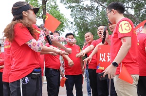 本次活动设置15支参赛队伍,每支队伍10人。经过一轮热身运动和规则讲解后,以诺通讯党支部拟定“以我之力,扬帆起航;许你之诺,筑梦远洋”的比赛口号,参赛队员们精神抖擞、干劲十足,奋力冲向各闯关点。各队队员通过相互合作都顺利完成了闯关任务,最后大家回到起点共同绘制建党100周年巨幅海报。通过本次活动,公司参赛党员不仅重温了中国共产党的光辉历程和红军长征的历史,更坚定了大家跟党走的决心和推动企业高质量发展的信心。