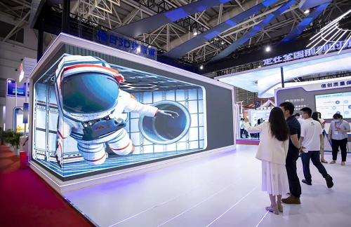 无需佩戴3D眼镜,就能看到人物仿佛穿过屏幕来到现实世界,迈锐光电裸眼3D屏也引得观展者们纷纷驻足,沉浸式享受视觉盛宴。据现场工作人员介绍,裸眼3D屏的原理是通过空间透视和混淆空间感知,利用人的左右眼视差错觉制造出立体感,关键技术是通过虚拟3D软件将立体画面按照一定观看角度在两个不同的面呈现出来。通过深耕LED显示领域,迈锐光电持续进行技术及产品创新,目前已运用“技术+创意”的裸眼3D大屏解决方案,成功助力打造了上海美罗元宇宙、成都宽窄巷子等多个城市网红地标。