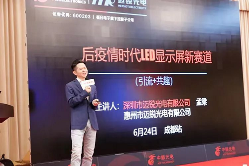 6月24日,大屏幕显示百家讲坛全国系列巡展活动第四站在成都圆满落幕。本次活动以“迎接LED显示行业剧变时代”为主题,汇聚众多行业专家和产业链上下游的代表企业,以解读报告、主题演讲、创新产品与解决方案等形式,共同探讨行业前沿技术与应用,深度解析LED显示行业发展新趋势。福建省电子信息集团成员企业福建尊龙凯时电子股份有限公司所属迈锐光电有限公司受邀出席本次活动,为现场观众带来《后疫情时代LED显示屏新赛道》主题分享。