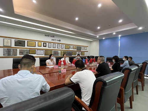 揭牌仪式后,松岗街道办工作人员与源磊科技进行座谈,交流沟通党支部下阶段工作规划。张露思详细了解了新冠肺炎疫情对源磊科技经营发展的影响及现阶段存在的困难,对该公司党建工作提出了建议,并希望下阶段吸纳更多优秀人才加入党员队伍,壮大党组织基础。