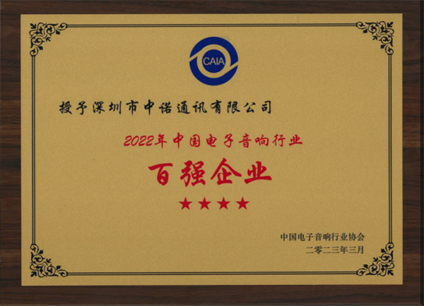据悉,该榜单以行业企业2022年的企业生产总额、营收数据、企业估值等作为入围标准。入选企业均为电子音响行业内的佼佼者与领军者,此次荣登行业百强榜单是市场对中诺通讯的充分肯定。