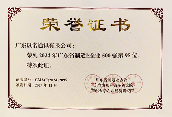 “广东省制造业企业500强”榜单由广东省制造业协会联合相关机构发布,旨在贯彻落实党的二十大精神和高质量发展要求,通过严格的数据采集与专家评审,全面反映广东制造业的竞争力与发展趋势。榜单自2013年启动以来已连续发布12年,是政府政策制定和行业前沿研究的重要参考。以诺通讯凭借持续创新和稳健发展跻身前百强,这一荣誉是对企业技术实力和行业贡献的高度肯定。